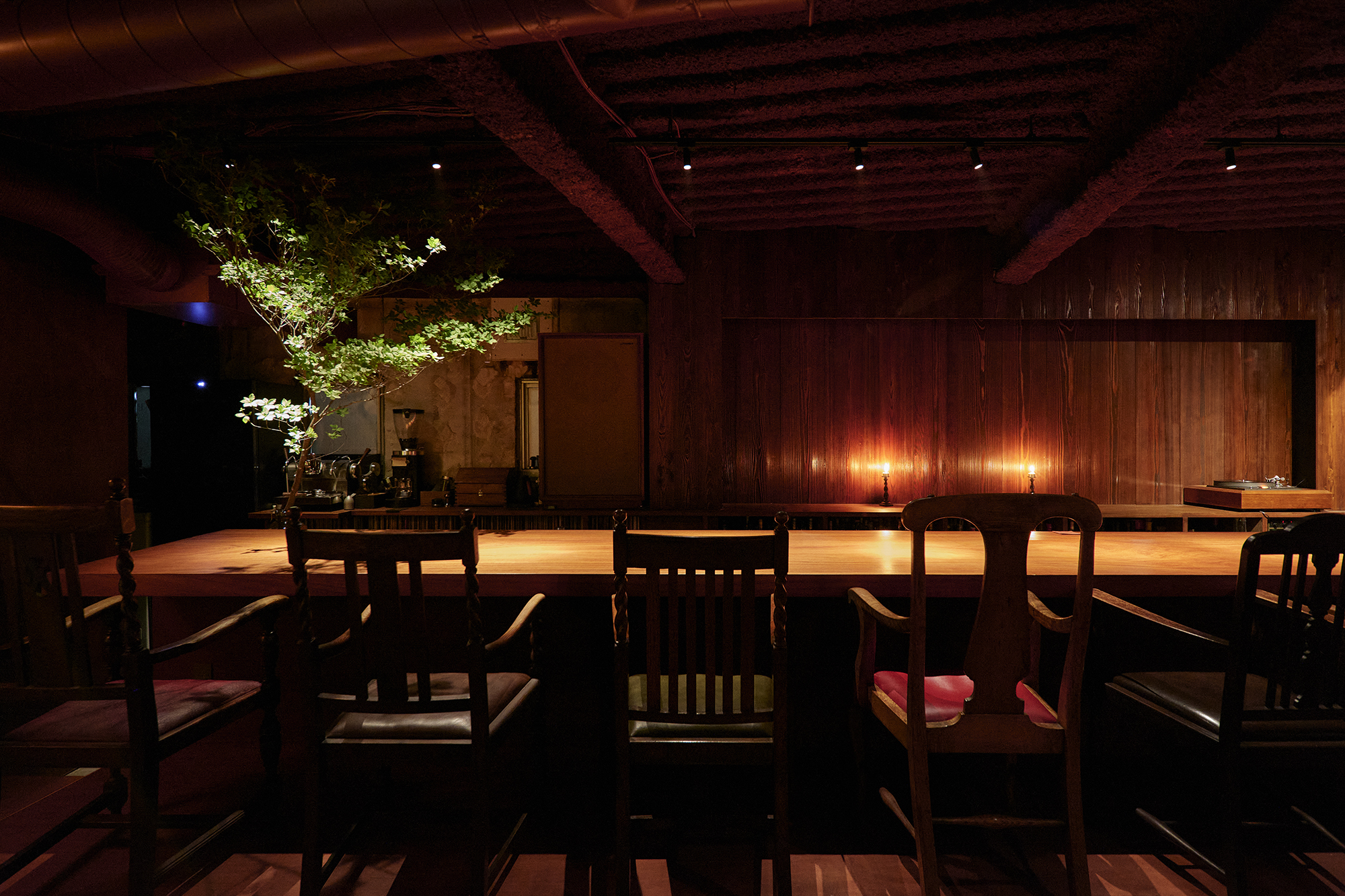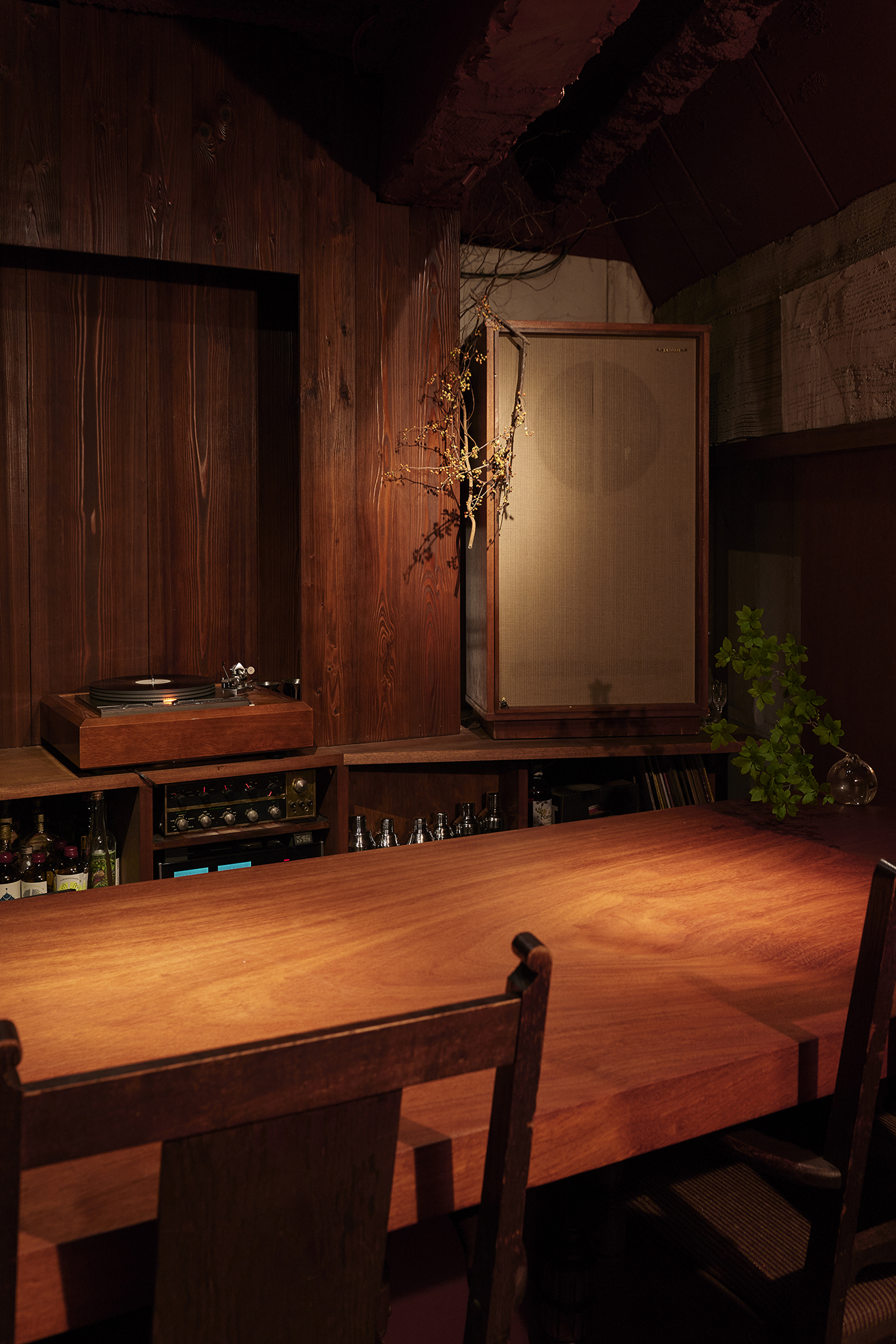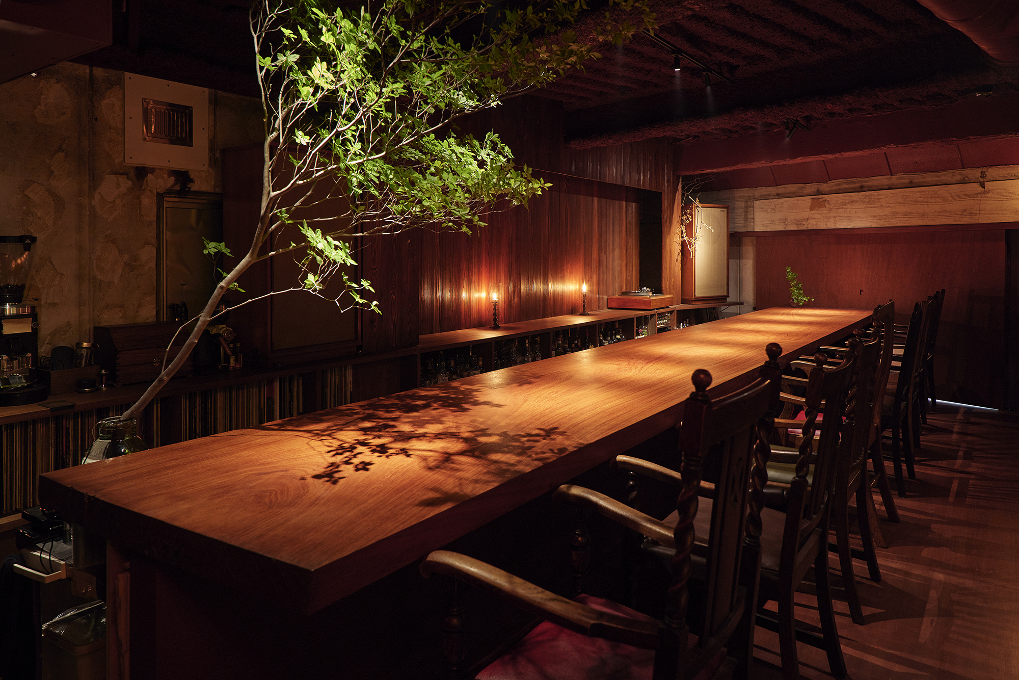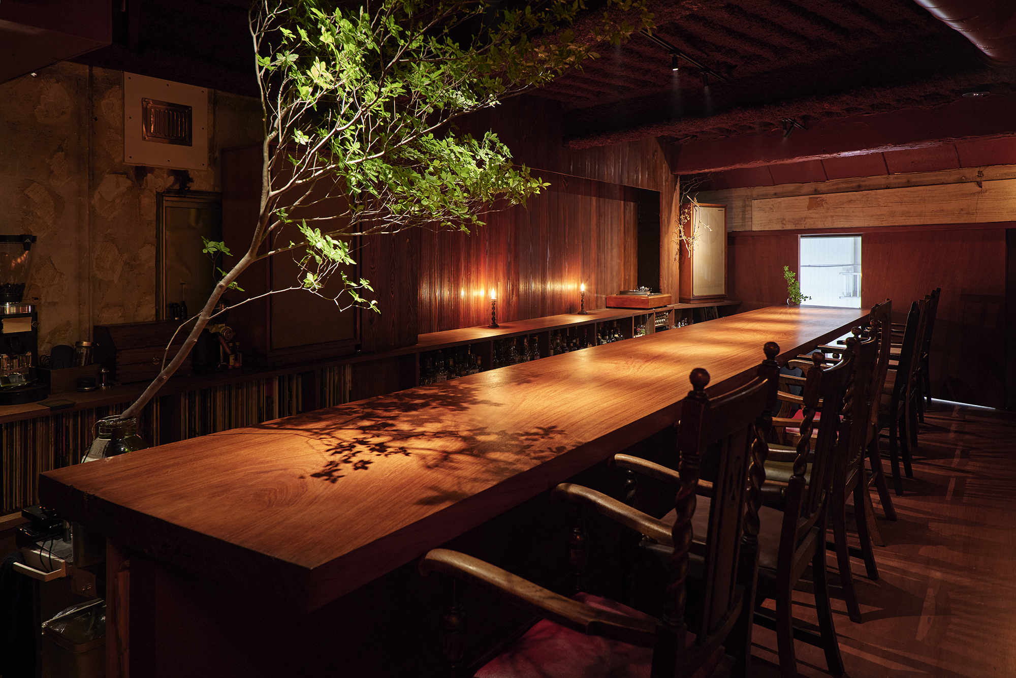 その余白を残しながら、さらに拡張していくように計画することで、こだわりのお酒をゆっくりとたしなみ、良質な音楽に没頭し、やがて静かに会話が始まる、そんなゆったりとした時間が流れる場所を目指した。